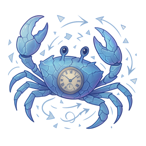 A creature pieced together from shattered timelines and rusted sea myths, the Fractured Crab scuttles along rifted shores where reality struggles to stay whole.